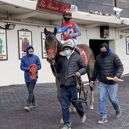 Dust Devil (KY) TB, DK B/, G, FOALED MARCH 26, 2017 ( TAPITURE – DEVILS HUMOR, BY DISTORTED HUMOR ) CONNECTIONS (1/8/20-7/3/21): Jockey: Joel Rosario Trainer: Mertkan Kantarmaci Owner: America’s Pastime Stables and Krakow Racing, LLC Breeder: Winchell Thoroughbreds LLC View More on Equibase.com Current Offerings Results Date Track Race Type Distance Jockey Surface Race/Replay Finish/Chart 01/18/2021 Aqueduct Claiming 1 Mile Carmouche, K Dirt - Fast 2 1st 02/21/2021 Aqueduct Starter Allowance 1 Mile Carmouche, K Dirt - Good 7 4th 03/12/2021 Aqueduct Starter Allowance 1 Mile Vargas, J Dirt - Fast 5 2nd 04/01/2021 Aqueduct Starter Allowance 1 1/8 Miles Cancel, E Dirt - Sloppy 6 1st 04/29/2021 Belmont Allowance 1 1/16 Miles Franco, M Dirt - Fast 7 4th 05/29/2021 Belmont Allowance 1 Mile Cancel, E Dirt - Sloppy 3 3rd 06/19/2021 Belmont Allowance 1 1/16 Miles Rosario, J Dirt - Fast 2 3rd Other Horses Sabby Sunset Moment’s Notice Belliqueux Pioneering Spirit